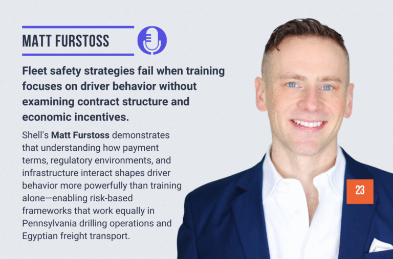 Matt Furstoss is a Certified Safety Professional (CSP) and Certified Risk Management Professional serving as Global Road Safety Advisor at Shell. With a background in brain and cognitive sciences combined with frontline field experience on drilling rigs, Matt brings both analytical rigor and human connection to managing transportation risk across Shell’s global operations. He develops […]