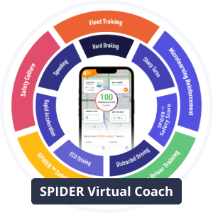Our proprietary S.P.I.D.E.R. Method™ was developed by the world’s top behavioral and driving experts to give you a simple set of tools that will help you make safer choices and avoid collisions. Resulting in up to 76% reduction in unsafe driving.