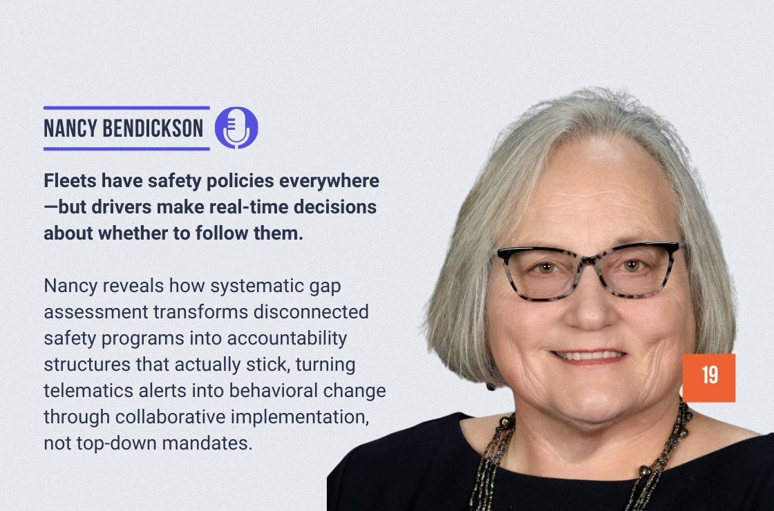 According to Nancy Bendixson, it’s not a policy problem—it’s a gap problem. Most fleets don’t even know their actual starting point.
